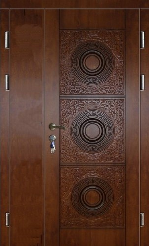 Стальная двустворчатая дверь ДВ-419 из массива и филёнчатого МДФ может быть произведена под любой размер проема и в любом цветовом решении. Также возможно изменить параметры конструкции и комплектацию замков.
