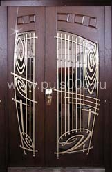 Двустворчатая парадная дверь ПР-28 с массивом и ковкой